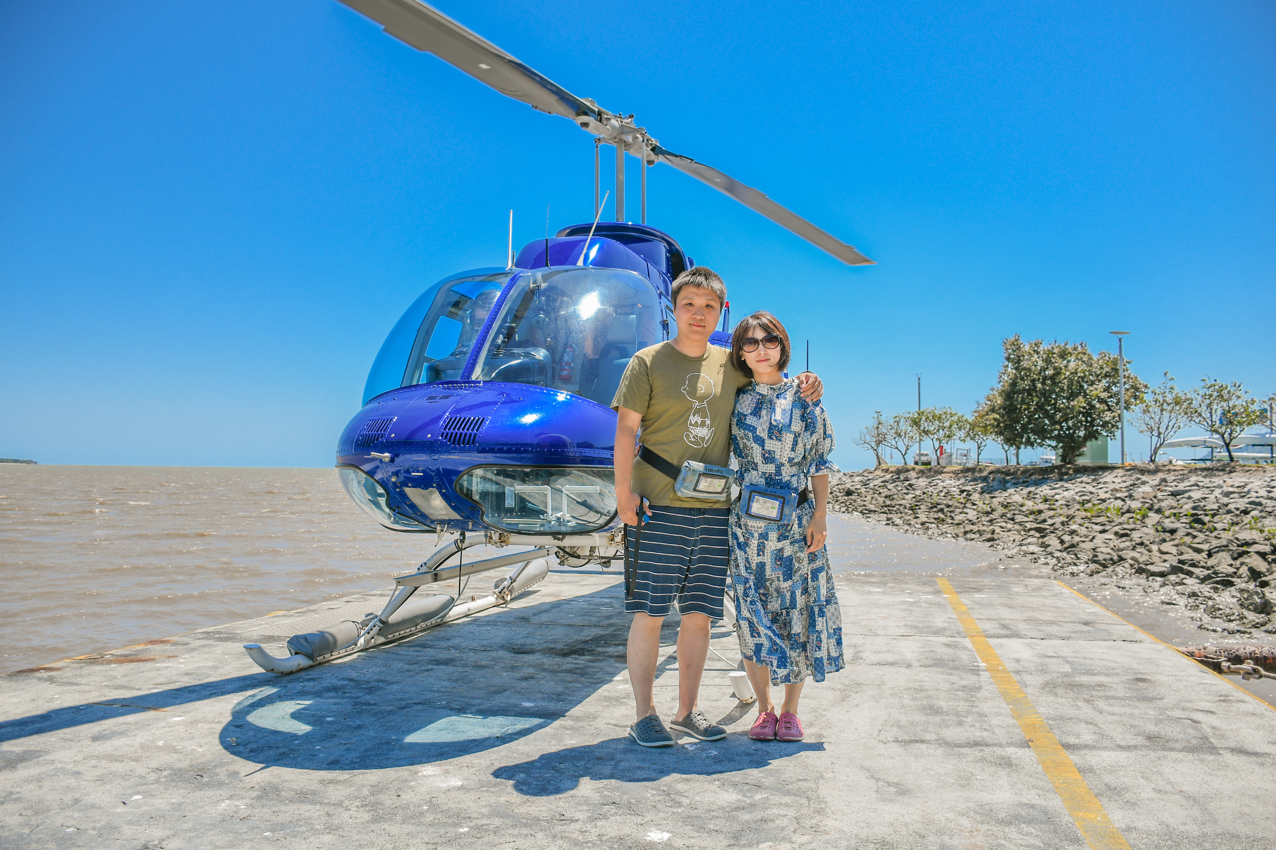 直升飞机起飞了。从这张也能看到老婆的模样,所以说这240人民币花得值了。这种照片可不是咋们随便能拍的。